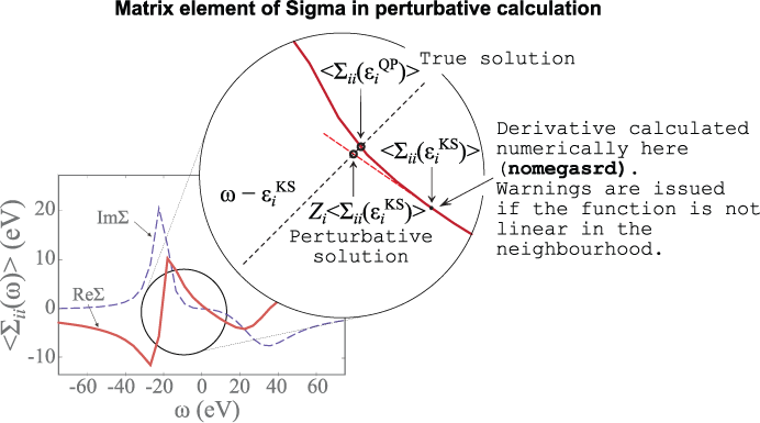 Under the assumption that the QP wavefunctions equal the KS orbitals, we can expand the self-energy operator around \(\ee^\KS\) obtaining a closed expression for \(\ee^\QP\):